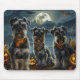 Libere o espírito assustador com esta design sombria do Dia das Bruxas apresentando um bando de cachorros sob um céu escuro e iluminado, cercado por morcegos voadores e abóboras brilhantes. Perfeito para aqueles que amam um toque de diversão terrível com seus amigos peludos!