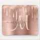 Adicione um toque de vidro ao seu escritório doméstico ou dormitório com este elegante mouse pad personalizado. Este modelo de design chic apresenta um grande monograma de script rosa pincelado e seu nome para personalizar sobre um fundo de textura metálica dourada rosa, piscada, acentuado por uma borda de metal falsa que goteja. Um presente feminino único para aniversário, feriados e qualquer ocasião especial. Projetado apenas para você por Camisetas Extremas!