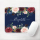 A moderna Aquarela Elegante Mistura de Rato Floral inclui rosas burgueses, rosas cor-de-rosa, flores azuis, flores vermelhas e belo verde botânico. Fundo Azul marinho com seu nome no script na moda.