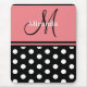 Mousepad Script do Monograma do Bolinhas Branco Rosa Preto