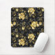 Padrão sem costura com orquídeas pretas e douradas florescendo, ricamente decoradas com galhos de eucalipto pretos e galhos de pistachio de joias delicadas em fundo preto. Orquídea de joias de ouro.