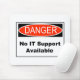 Atenção a este aviso de perigo ou avancem a seu próprio risco. "Nenhum suporte de TI disponível" é a mensagem deste sinal oficial. Você certamente vai querer compartilhar a mensagem com aqueles que não levam a sério a tecnologia da informação ou o suporte técnico a computadores e redes.