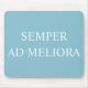 Um tapete motivacional de rato com a frase latina "semper ad meliora". Uma frase popular na Roma Antiga, a tradução é "sempre para coisas melhores". Recorda-nos que nos devemos concentrar em avançar no sentido de coisas maiores sem olharmos para trás. A inscrição do mouse pad tem uma sensação clássica evocando inscrições públicas romanas. O design tipográfico apresenta um texto branco nítido sobre um fundo azul-turquesa. Sendo inspirador e na moda, vai fazer uma bela adição à sua mesa.