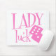 Este design retro bonito é perfeito para jogadores da senhora & jogadores de cartão. Projete lê a "senhora Sorte" em uma pia batismal do vintage e caracteriza um par de dados que rolaram o número afortunado sete!