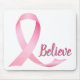 Símbolo rosa da Fita para o Reconhecimento do Cancer da Mama e texto "acreditar". O texto é editável. A cor de fundo pode ser alterada.