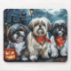Libere o espírito assustador com esta design sombria do Dia das Bruxas apresentando um bando de cachorros sob um céu escuro e iluminado, cercado por morcegos voadores e abóboras brilhantes. Perfeito para aqueles que amam um toque de diversão terrível com seus amigos peludos!