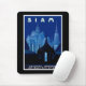 poster de viagens vintage para Sião promovendo Bela Banguecoque mostrando templos exóticos.