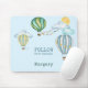 Uma bela ilustração com aquarelas, com 3 balões de ar quente em vários tons de azul, lacre e verde flutuando graciosamente no ar. A citação "seguir seus sonhos" é mantida em uma letra de máquina de escrever ousada. Adicione seu nome ao painel do mouse para personalização.