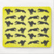 Silhuetas de Silken Windhound Correndo em um fundo amarelo.