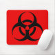 Símbolo de risco biológico preto em uma cor vermelha neon.