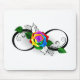 símbolo infinito com rosa arco-íris sobre fundo branco.