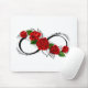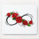 símbolo infinito com rosas vermelhas e hastes pretas sobre fundo branco. Design com rosas. Tatuagem. Estilo gótico. Gráficos tribais. Esboço de estilo.