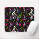 Símbolos e notas musicais coloridos com música, notas, clf, triplo, quaver,baixo,crochê sobre fundo negro