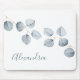 Este tapete do rato simples e elegante caracteriza um grupo simples do eucalipto da aguarela, em um fundo branco limpo para um olhar minimalista impressionante.