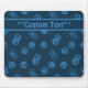 Mousepad de padrão aleatório de símbolo de paz em azul com campo de texto editável. Personalize com qualquer string de letras, números ou símbolos de texto.