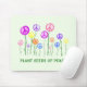 Uma design colorida de símbolo de paz "flores" crescendo em um jardim, com a mensagem "Plantar sementes de paz". Se querem ajudar a promover a paz no mundo, façam uso disto como um lembrete gentil para que todos nós atuemos de forma a fomentar a paz.