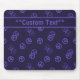 Mousepad de padrão aleatório de símbolo de paz em roxo com campo de texto editável. Personalize com qualquer string de letras, números ou símbolos de texto.