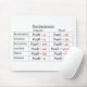 Um mousemat para algum estudante latin. Este mostra os primeiros términos da declinação para substantivos, usando a palavra latin "puella", que significa a "menina". Os términos estão no vermelho assim que estão para fora, fazendo o fácil manchar a informação relevante com um relance.