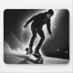 Um skate é capturado em ação de médio, deslizando sobre um conselho enquanto raio ilumina o céu noturno atrás dele
