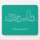 Características deste design um esboço tirado mão da skyline de Orlando em um fundo de turquesa.