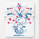 Amendoins 4 de julho | O esnoopy dança alegremente com fogos de artifício estilizados no fundo.