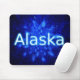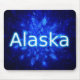 Um enxame de flocos de neve fractais azuis. Perfeito para quem vive num clima frio ou ama o inverno. A leitura de texto "Alaska" aparece em azul e branco brilhantes.