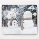 Two snowmen were having a lively snowball fight in a beautiful winter forest, where one snowman lost his carrot nose