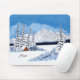 A mouse pad with a beautiful winter scene including snowy mountains, rustic cabin and snow covered evergreens. The image and text can be personalized. Original artwork by W.B.