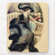 A ilustração do vintage de uma mulher no bordado rica e pele alinhou o vestido, o chapéu, e o casaco. Está sentando-se em um banco que olha algumas flores.