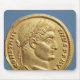 Solidus romano (anverso) de Constantim mim, o excelente (306-337) vestindo uma grinalda do louro. Inscrição: CONSTANTINVS P F AVG situado em um colecção privada. O Solidus (anverso) de Constantim mim, o excelente (306-337) vestindo uma grinalda do louro. Inscrição: CONSTANTINVS P F AVG foi criado em torno do século IV.