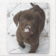 ø dia na neve para o mês "Lakota velho", em um filhote de cachorro de Chesadore, em um chocolate Labrador de 1/2 e em um Retriever de baía de Chesapeake de 1/2.