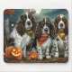 Libere o espírito assustador com esta design sombria do Dia das Bruxas apresentando um bando de cachorros sob um céu escuro e iluminado, cercado por morcegos voadores e abóboras brilhantes. Perfeito para aqueles que amam um toque de diversão terrível com seus amigos peludos!