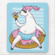 Um legal unicórnio de verão em um flutuador de rosquinha aproveitando uma bebida legal pendurada na piscina.