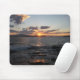 O pôr do sol como visto no Parque Nacional de Acadia na Península Schoódica, Maine EUA, no dia seguinte ao furacão Earl ter escovado o litoral de Maine. A montanha à distância é Cadillac montanha, na ilha do deserto do Monte.