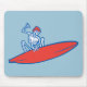 Surf! O mouse surfer pad do esqueleto apresenta um esqueleto vestindo um beanie capturando uma onda em seu conselho surf vermelho. Faz um presente excelente para surfistas, snowboarders e outros esportes radicais.