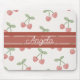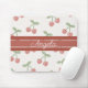 Um padrão repetitivo brincalhão de cerejas vermelhas em forma de coração com folhas verdes em fundo texturizado macio, trazendo charme de safra e um toque de doçura para qualquer estética retrô.