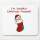Aperfeiçoe para o primeiro Natal do bebê, um bebê adorável em uma meia do Natal e o texto que me lê "está presente do Natal do pai!" é caracterizado em t-shirt do feriado, sacolas, e mais.