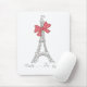 A torre Eiffel maravilhosa com uma fita vermelha e branca lindo das bolinhas. Paris escrita, t'aime do je.