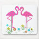 Trabalhos de arte gráficos originais de estacas cor-de-rosa da jarda do flamingo com as flores coloridas e lunáticas. Tapete do rato bonito das horas de verão que faria um presente excelente.