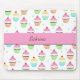 Este tapete do rato é feito em cores pastel com o rosa que é a cor principal. Tem cupcakes pequenos coloridos por todo o lado nele. Uma listra cor-de-rosa funciona através do centro com texto feito sob encomenda dentro dela.