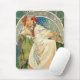 Tapete do rato da princesa Jacinto de Alphonse Mucha. Poster da litografia desde 1911. O artista checo Alphonse Mucha criou alguns das propagandas e dos posters os mais lindos do período do nouveau da arte. A princesa Jacinto é um trabalho que caracteriza uma menina bonita que veste uma coroa de cristal com as flores vermelhas em seu cabelo. A mulher guardara um floco de neve de cristal e senta-se em um vestido colorido creme. Atrás dela o poster ornamented com um teste padrão intrincado das estrelas, das coroas, e das outras formas. Acima de lê o texto "Princesna Hyacinta." Um presente bonito para fãs de Alphonse Mucha, nouveau da arte, e posteres vintage e propagandas.