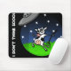 O texto do tapete do rato da ilustração engraçada da abducção do UFO da vaca e a cor horizontais do fundo podem ser personalizados.