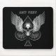 O ás de espada bonito voou o tapete do rato da ilustração do crânio com texto customizável. Personalize com um nome, iniciais ou o outro teste.