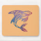 design de tatuagem decorativa de uma baleia ou de uma baleia abstrato orca ou de uma baleia assassina de cor púrpura numa almofada de rato colorida de damasco