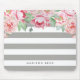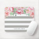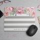 O moderno peony floral mousepad apresenta grisalha esverdeada chic taupe ou faixas beges-cinza com um buquê de cor-de-rosa pincelada e verde-salva que florescem do topo. Personalize com um nome, monograma ou mensagem usando o campo fornecido.