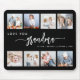 Dê à vovó um presente que ela amará. Este mouse de colagem de fotos apresenta oito de suas fotos quadradas favoritas dos netos, juntamente com a mensagem "Love You Avó" (Ame sua avó). A palavra "vovó" aparece em um elegante roteiro branco de escrita manual com florescimento no começo e no fim em um fundo preto. Adicione os nomes de até quatro netos. Um presente ideal para feriados, aniversários ou dia de avós.