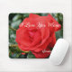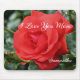 Eu te amo mãe com uma rosa vermelha bonito no cheio florado com gotas de chuva persistentes no mouse personalizado do computador. Fotografia da Flor por Susan. Você pode adicionar ou alterar qualquer texto que desejar. presente de excelente para aniversários, Dias de as mães, Dias de os namorados ou qualquer ocasião. Esta imagem está disponível em muitos produtos da minha galeria.