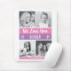 Esta tenda de mouse e na moda apresenta quatro fotos de você e sua avó, com blocos de cores modernos em roxo rosa e lavanda com tipografia escrita à mão branca e corações bonitinhos. O mouse pad diz "nós te amamos, Nana", e você pode adicionar seus nomes.