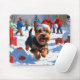 Mousepad Terrier escocês correndo neve com chapéu de Natal