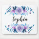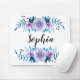 Mousepad com design floral romântico da grinalda da aguarela azul & roxa e nome customizável ou monograma.